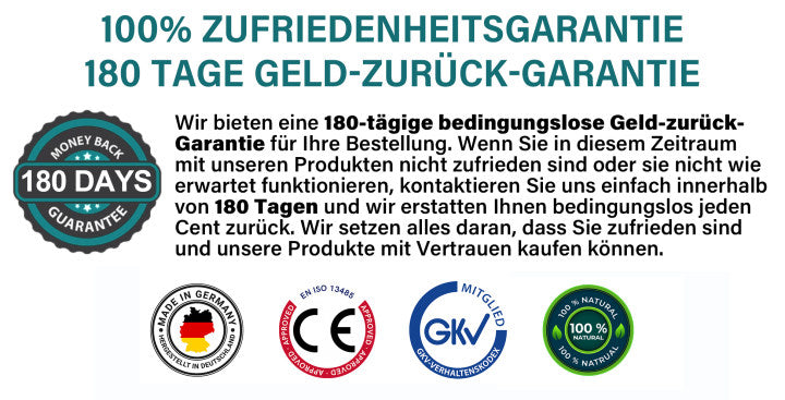 Wir bieten eine 180-tรคgige Geld-zurรผck-Garantie an