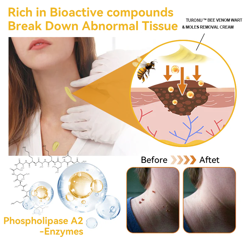 Bienengift enthält mehrere bioaktive Elemente wie Melittin, Apamin und Adolapin, die wissenschaftlich erwiesenermaßen wirksam gegen Hautflecken oder Warzen wirken. Unter seinen enzymatischen Bestandteilen ist Phospholipase A2 besonders hervorzuheben, da sie abnormales Gewebe abbauen kann und so den Prozess der Entfernung von Hautflecken oder Warzen vereinfacht.